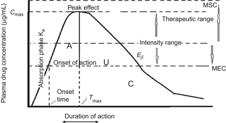 Integration: cumulative outcome over time. Total health recovered (or lost), plus lingering effects (chronic sequelae, side effects) and a new baseline constant (post-treatment equilibrium—remission, managed condition, or permanent change).