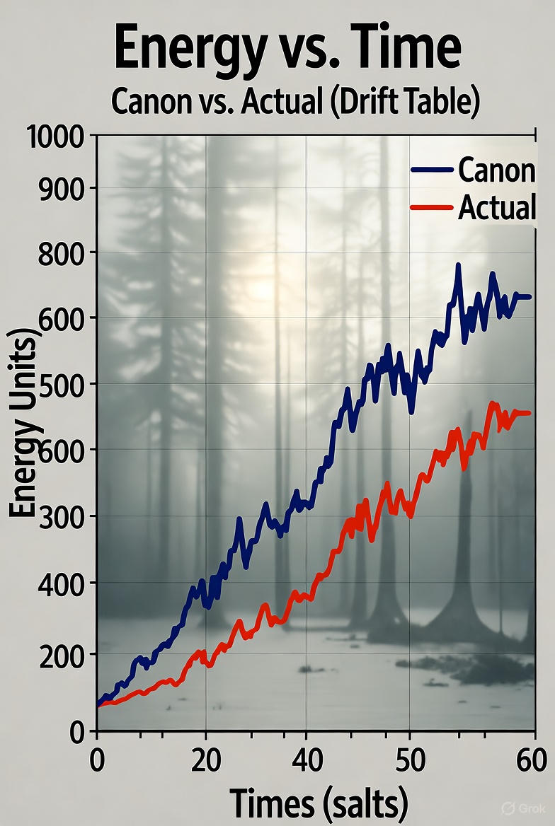 Next lap? Render the drift table as a log-line chart (energy vs. time, canon vs. actual)—or fork the React for a “donor concourse” mode (input walk data, output ukb-score). Voltage source calls: Yebo or nay?